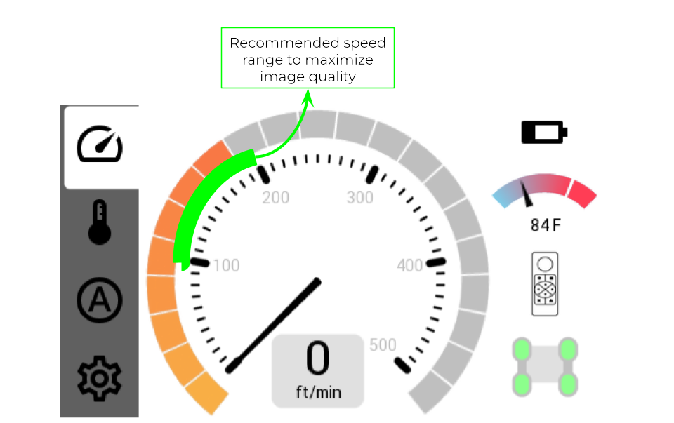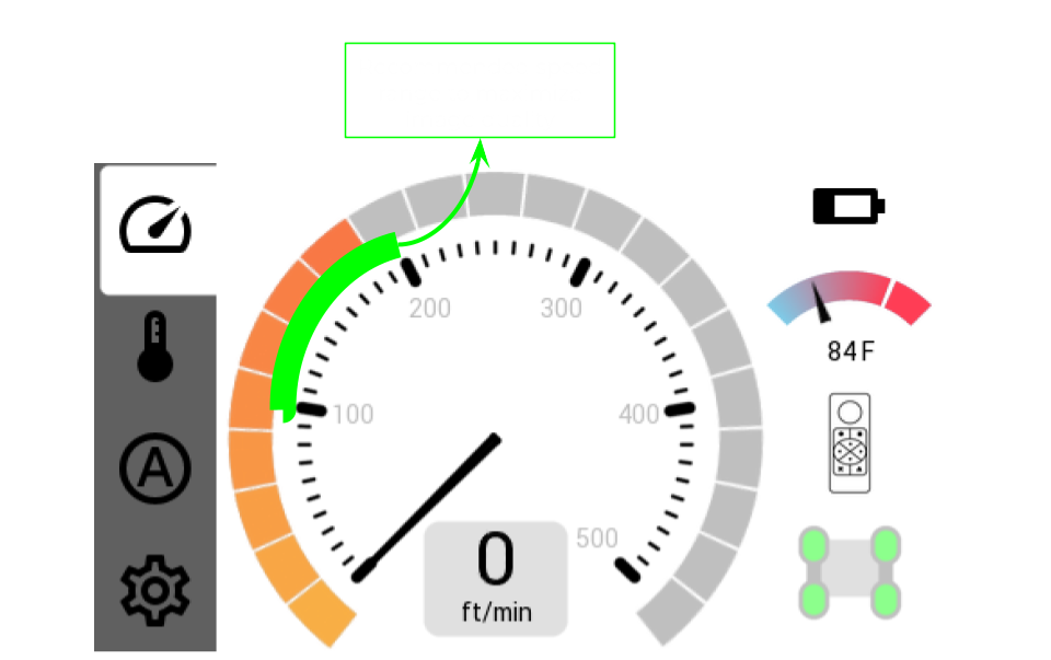 - We recommend going 100 - 200 ft/min (the first 2 major ticks) to