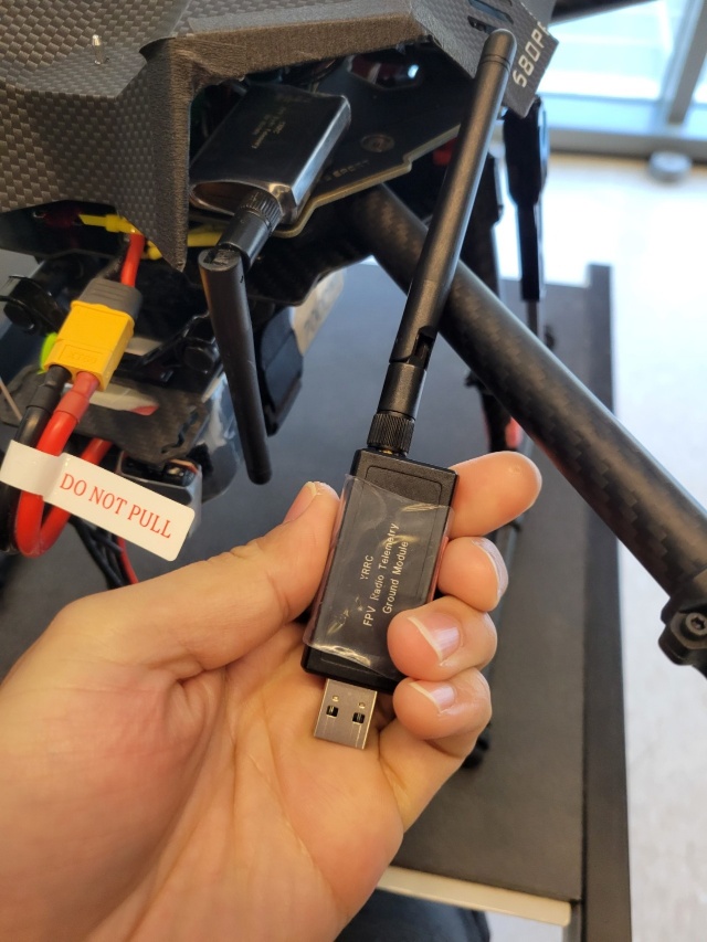 - Power up the drone and plug the USB Radio module into your computer. Be aware of the plus and minus of the connector.