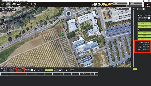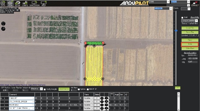 Write the waypoints to the drone when it's connected to the Mission Planner Software.