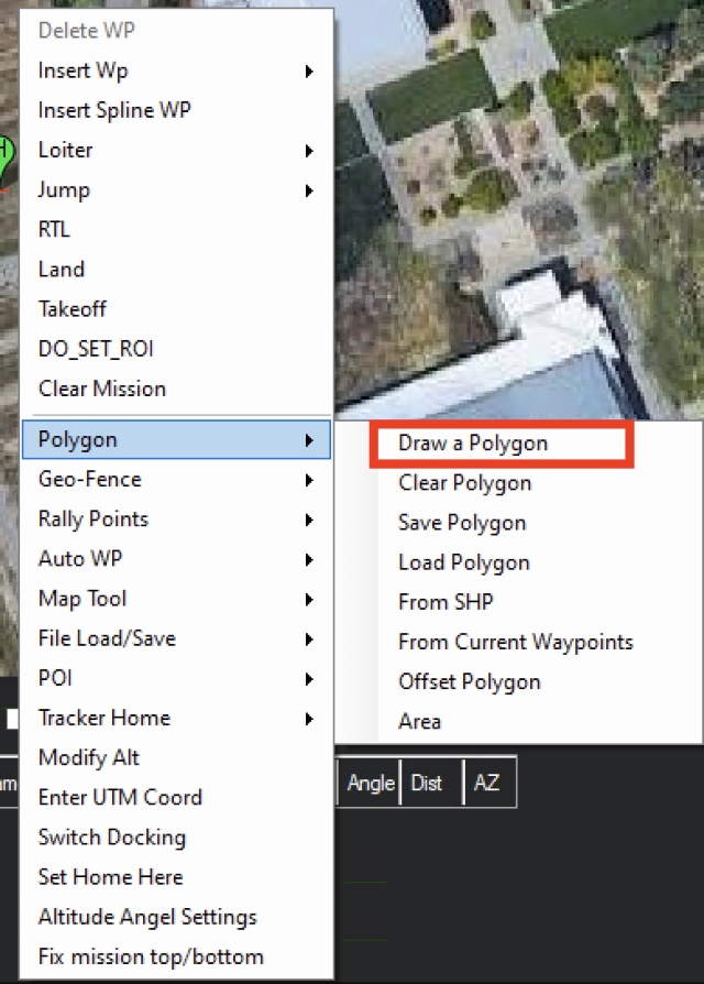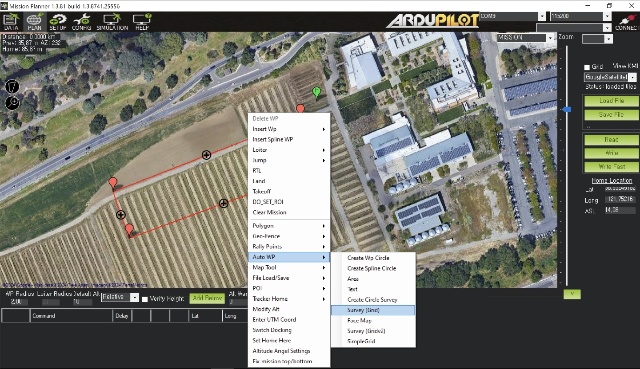 - To create a survey mission, right-click → Auto WP → Survey (Grid).