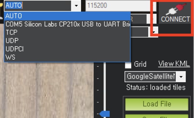- Select AUTO and Click Connect. It will automatically scan the port and find the USB radio module.