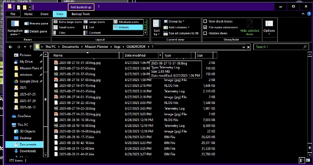 - The downloaded log can be found at C:\Users\PAIBL\Documents\Mission Planner\logs\QUADROTOR\1.